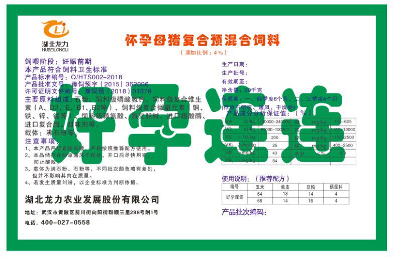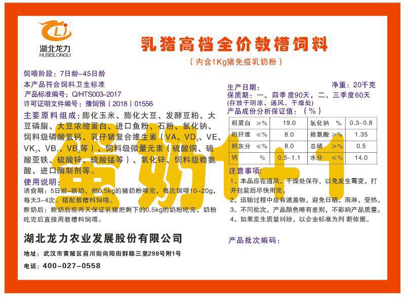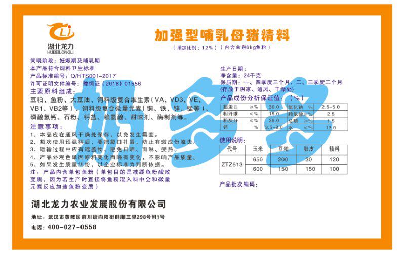 湖北龍力農(nóng)業(yè)發(fā)展股份有限公司坐落于武漢市黃陂區(qū)前川街向陽街群順三里298號(hào)附1號(hào)。公司成立于2014年6月,公司自成立以來把“創(chuàng)全球最大養(yǎng)豬綜合服務(wù)”為企業(yè)愿景。致力于打造教保料品牌”作為公司發(fā)展的明確目標(biāo)。公司一直致力于豬營(yíng)養(yǎng)的研究和開發(fā),積極與國(guó)內(nèi)外高校和科研機(jī)構(gòu)合作,推廣養(yǎng)豬技術(shù)、動(dòng)物營(yíng)養(yǎng)新概念,向世界農(nóng)牧企業(yè)學(xué)習(xí)與合作。公司采用國(guó)內(nèi)先進(jìn)的生產(chǎn)工藝,選擇高精度電子配料秤,高均勻度、無殘留混合機(jī)等先進(jìn)設(shè)備....